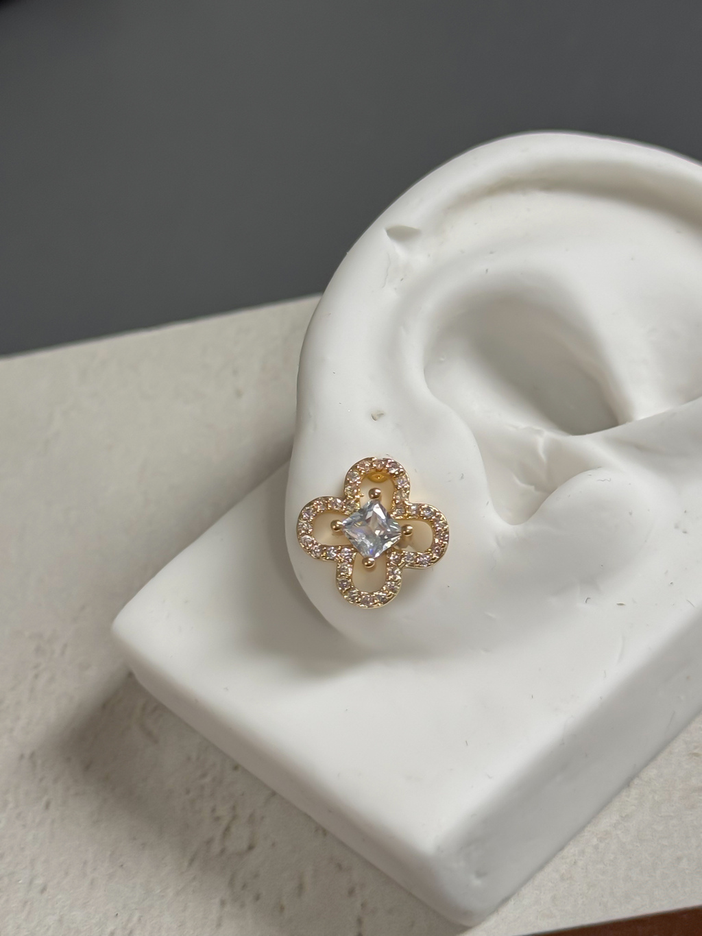 Brinco Trevo Cravejado com Ponto de Luz – Linha Premier